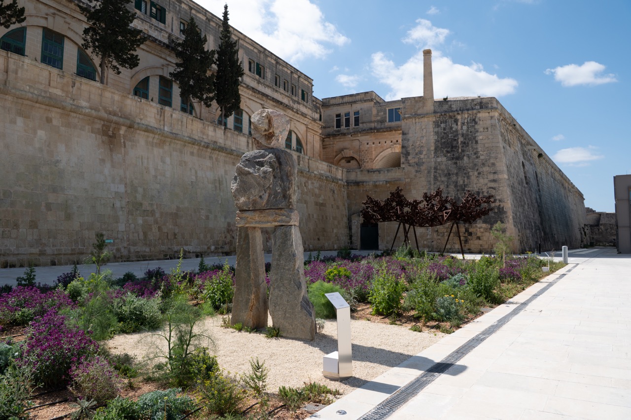 The complex layering of cultural traces and memory permeating the Marsamxett harbourscape, St Michael’s bastion and Hastings Gardens are the dramatic backdrop to Cristina Iglesias’ exciting artwork.